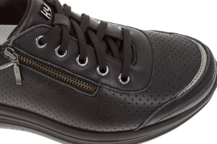 kybun lancy black се откроява с елегантния си спортен вид. kybun lancy black получава своя спортен вид от интелигентната перфорирана класическа черна кожа и сребърните вложки, подчертаващи определени точки. среброто е умело повторено в ципа, втулките и емблемата "ky".